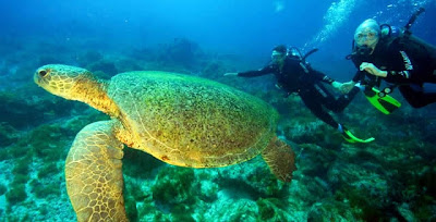 This picture isn't from my trip, but I had to show you it because I saw a big sea turtle like this while snorkeling and did just what these people are doing! I swam up next to it and touched its shell, then continued to swim alongside it and follow it for about 10 minutes. So awesome!